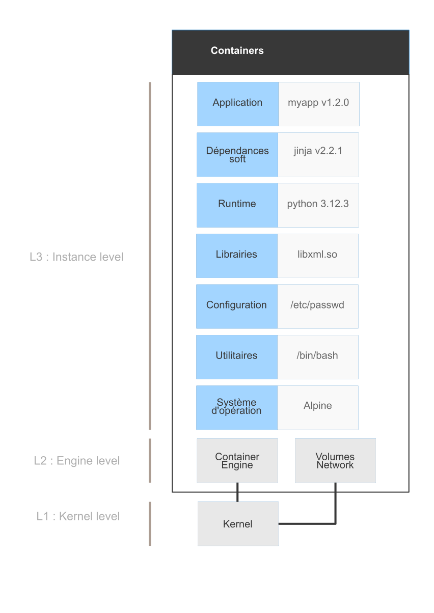 - Immutabilité : on ne modifie jamais une image "dans le fond" — au lancement d'un conteneur, Docker ajoute une couche read/write par dessus la pile